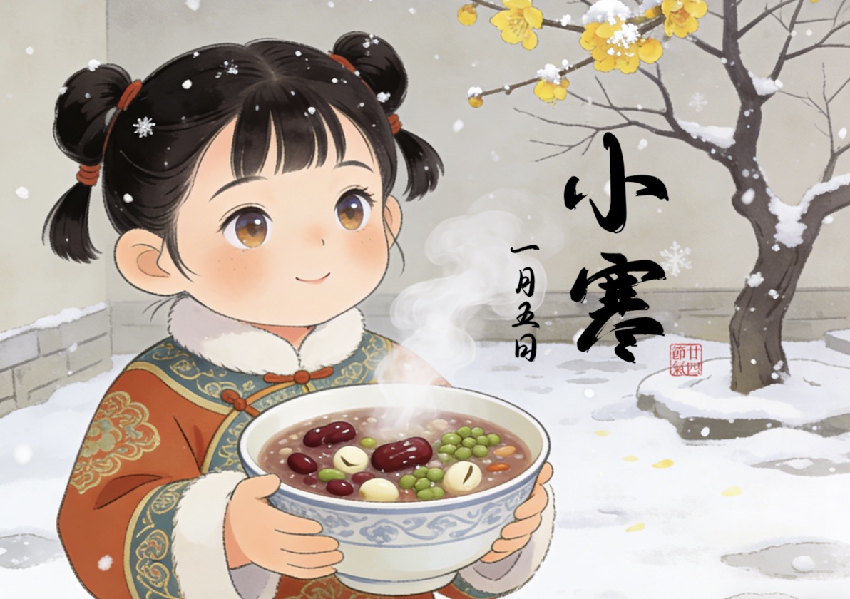 每逢小寒节气,饮食上“小寒”节气中有一重要的民俗就是吃“腊八粥”。《燕京岁时记》中记载:“腊八粥者,用黄米、白米、江米、小米、菱角米、栗子、红豇豆、去皮枣泥等,合水煮熟,外用染红桃仁、杏仁、瓜子、花生、榛穣、松子及白糖、红糖、琐琐葡萄,以作点染。”小寒之后腊八节也是同样要吃腊八粥,之后便年味渐浓。腊八在小寒节气前后,在这个时候吃一餐内容如此丰富的热粥,既能刺激食欲,又可以增加机体热量,起到暖胃消寒的作用。