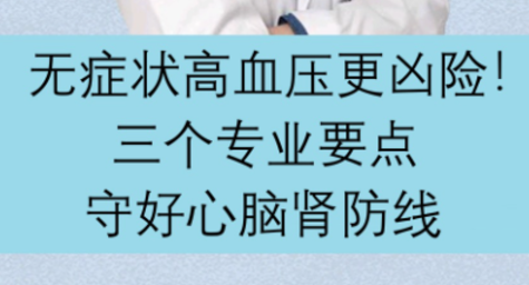 无症状高血压更凶险!3个专业要点,守好心脑肾防线