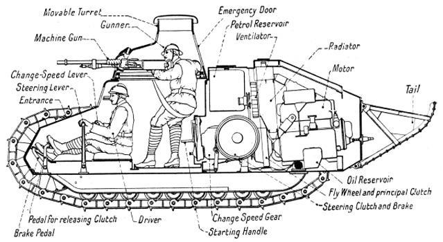 第一个,我不知道大家看到这张图片的时候你有什么感觉,这是法国的在一次世界大战之后生产的一种坦克,它叫雷诺FT17,是著名的雷诺公司生产的,这个剖面图拿出来给人的第一感觉就是一个机甲,为什么?我们讲的机甲就是人进入到机器里面去进行战斗,这是我们对机甲最基本一个概念,实际上坦克就是这样一种东西。那么在日本,大家注意在一次世界大战之后,日本军队里面也装备了坦克,我们现在台湾地区还是把坦克部队叫做战车部队,但是到了第二次世界大战的时候大家知道,德国发明了一种全新的坦克作战的战术就是闪电战。大家知道日本始终在军事方面是以德为师的,所以日本也想学习这个,到了1941年左右,日本当时的陆军省成立的一个机构叫做陆军省机甲总部,这个名字听起来很科幻。这个机构就是统管日本的装甲兵、汽车兵还有骑兵这些速度移动比较快这些兵种的军政事务,这个是机甲作为一个军事术语出现在日军里面最早的这么一个机构,在正式官方文件里面出现机甲这两个字。 后来我们知道一直到现在日本的陆上自卫队,它的装甲兵依然叫做机甲课,陆军机甲课感觉上日本的陆上自卫队最高的就是这个实际上日本所谓的机甲就是我们中国来讲的装甲兵,当然这不是传统的坦克,是这么一个概念,所以机甲这个词来日语里是指装甲部队。当然,这个里面从日本的机甲到我们中国的机甲的概念是有一个很漫长的过程,讲起来足够讲一节课的,这个我们就不分析它了。第一个来源是坦克,第二个来源就是我们讲的美国科幻文化。大家知道日本曾经做过美国七年的殖民地,这个在我们印象里面不是很熟悉,实际上从1945年日本战败投降一直到五十年代初《旧金山和约》签订这段时间,日本一直在美国的军事占领之下,我们几乎可以说它就是美国的殖民地,到今天日本人经常说自己不是一个正常的国家,为什么?因为在它的领土上还有美国的,尽管是一种同盟形式,但是对他有一种痛苦,这就是我们讲的美日的关系。如果大家对国际关系或者世界历史比较感兴趣,讲这一段的时候,更多讲的是美国对日本的政治改造,经济改造,解放财阀,实际上美国还做过对日本影响更深远的,就是文化的改造。在日本被美国占领之前,在整个二战期间甚至在二战之前,日本对美国的国家印象是非常矛盾的,一方面由于对美国的社会问题比如恐怖主义、黑帮泛滥、控枪问题,他们对美国非常的恐惧,另外一方面又对美国的,在美国对日本殖民的七年中,美国人用了很多办法改造日本人对美国的看法,甚至现在日本学者在重复这段历史的时候,说这段时间甚至是日本变成美国的文化殖民地,到今天,日本人对美国文化是一种半永久依赖的关系,所以我们经常讲意大利以前说过一句话:“我们不知道美国站在哪边,但是美国站在哪边我们就站在哪边。”实际上我们现在也是大国博弈的状态,我们曾经对日本有过一些幻想,认为我们能力强,日本是不是会跟我们在一起?不会,日本一定会站在美国那边,原因就是美国对它的文化殖民。在此过程中,大量的美式科幻被引入日本,对日本动漫产生影响的就是这部《星船伞兵》,它的作者就是海因莱因。