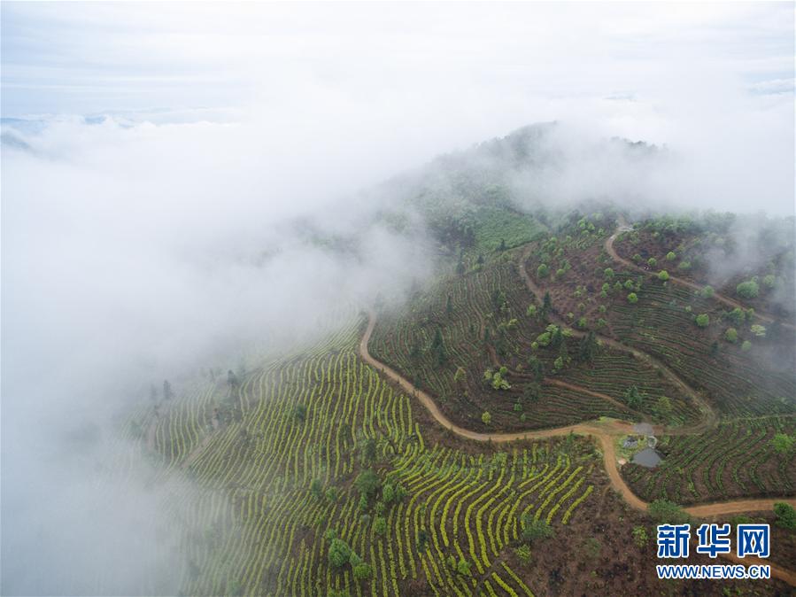 四川省筠连县筠连镇顶峰村与云南省盐津县牛寨乡交界的龙池山上的茶园云雾缭绕,宛若仙境。(图片来源:江宏景/新华网)