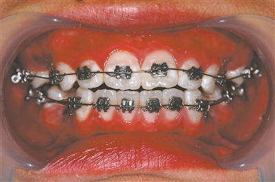 临床上使用经典的固定矫治器(钢牙套) (图片来源:新华日报)
