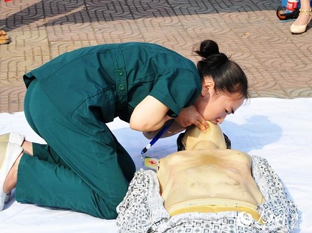 人工呼吸演示图(图片来源:人民网)