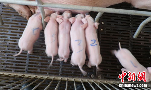 汶川地震"猪坚强"克隆小猪诞生。(图片来源:中新网)