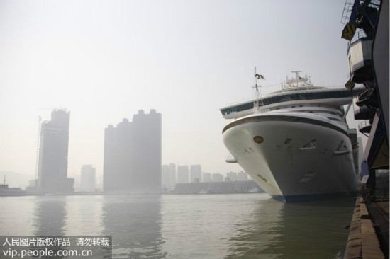 资料图:2011年4月5日上午9时,号称“全球十五大最豪华邮轮之一”的世界顶级豪华邮轮钻石公主号(DIAMOND PRINCESS)缓缓驶抵大连港码头。(陈浩/人民图片)