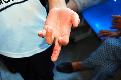 如果是被健康的猫或狗咬到,被咬者的咬伤处没有出现皮肤破损,则可当作小创伤来处理,用清水或肥皂水清洗,涂抹些许链霉素乳膏以防感染即可。如果咬伤处出现皮肤破损,刺伤,撕裂,流血等,则需先用干净的毛巾压住伤口止血,然后前往医院进行处理。如果是被疑似携带狂犬病毒的猫或狗咬伤,则应在被咬伤的第一时间内前往医院,注射疫苗及免疫球蛋白。如果离医院较远,则需要立刻采取应急处理措施,可先用清水或醋冲洗被咬处,切记不要用纱布包扎伤口。(谭路)