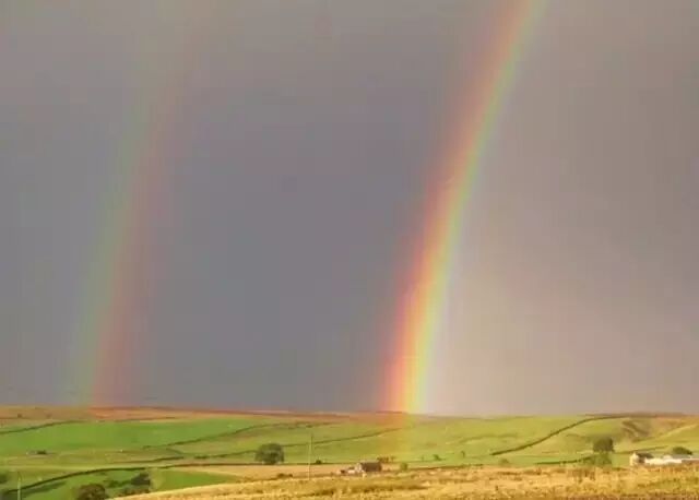 图中的左上角一道较模糊的彩虹被称为副虹,它的形成原因是一些入射光被反射了两次。副虹的颜色排列次序跟右侧主虹是相反的,而且它一直都存在,只是由于色彩较淡,因此人们有时候没有注意到它的存在。