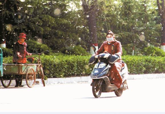 骑自行车和电动车的朋友,在这几天出门的时候,最好围上纱巾或带上墨镜,以防柳絮飞入眼睛,影响你的正常行驶,造成交通安全隐患。