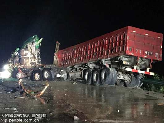 吉林两辆大货车雨中相撞,司机一死两伤。(高星乔/人民图片)