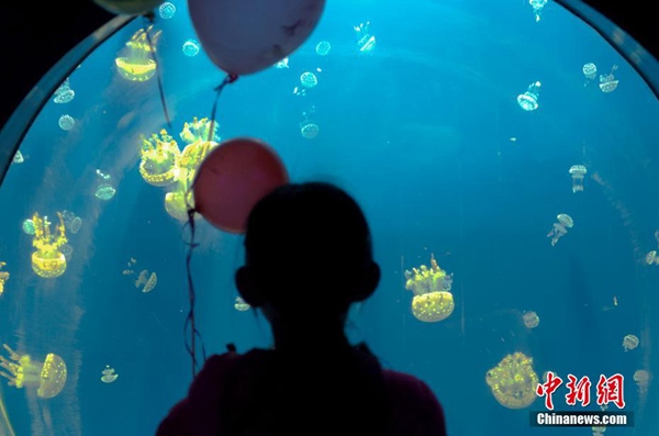 2017年1月1日,中国最大水母馆“未来水母館”亮相天津海昌极地海洋公园。(佟郁/中新社)