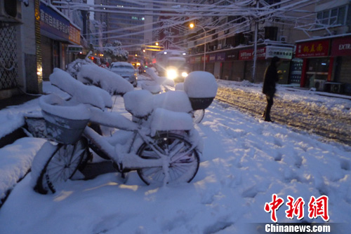 2013年02月18日晚,南京普降暴雪。(图片来源:卢辉/中新网)
