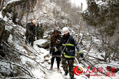 消防战士和景区工作人员正在救助被困游客 (图片来源:人民网)
