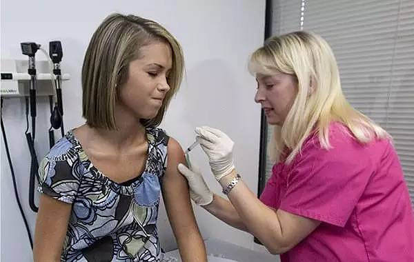 资料图:一名女孩正在接种宫颈癌疫苗(来源网络)