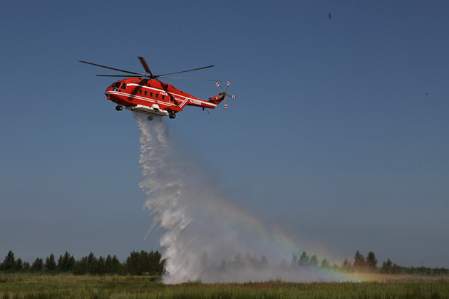 武警森林部队指挥高原型森林灭火直升机进行机腹式水箱洒水训练(来源网络)