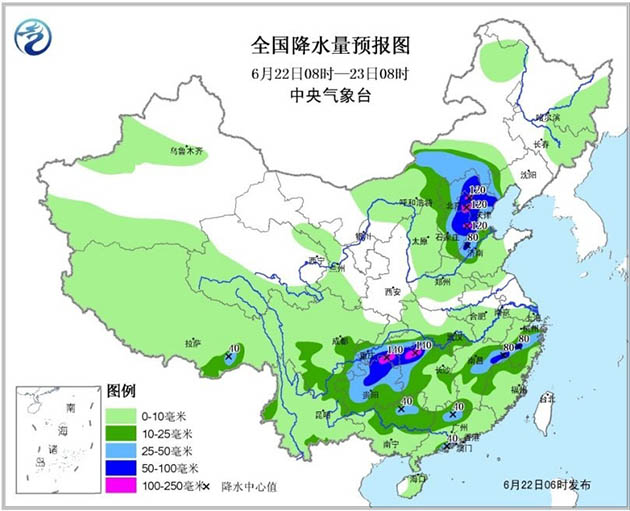 根据中央气象台通报,22日白天,北京、河北大部、河南北部、山东中西部、山西北部、内蒙古中部偏南地区等地出现中到大雨,山东中西部局地暴雨,泰安和济宁局地大暴雨(100-178毫米)。
