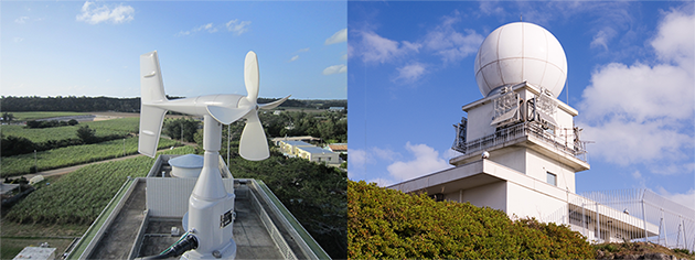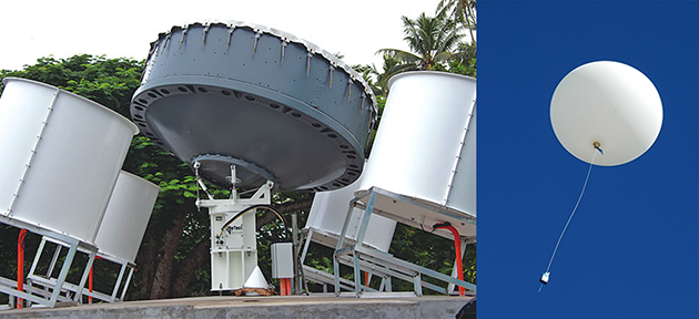 图2. 左: 风廓线雷达阵列, 右:无线电探空仪