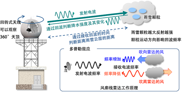 图3. 雨雪气象雷达和风廓线雷达的工作原理