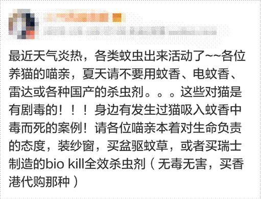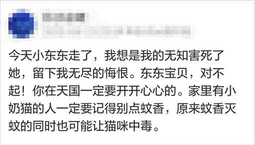 而高频次使用菊酯类蚊香,或铲屎官不幸买到了有效成分未明的,和实际浓度高于安全值的“三无”劣质蚊香,或家里的通风状况不好,或猫咪幼小老弱、体质不好,都可能出现开头所述猫主子被毒死的悲剧。