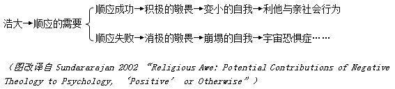 换句话说,顺应可能成功,此时敬畏就是积极情绪,后果是一串正能量;而顺应也可能失败,此时敬畏涉及消极情绪,后果也就一片负面波了。目前的敬畏理论,多以前者为主。