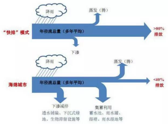 传统模式与海绵城市地表径流收集示意图(来源网络)