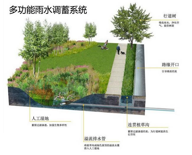 海绵城市中的多功能雨水调蓄系统应用示意图(来源网络)