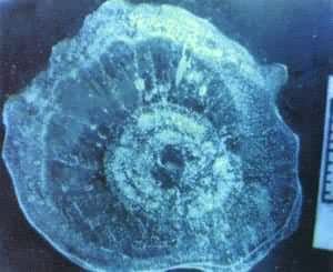 显微镜下用反射光和偏振光观察冰雹的薄切片,能见单体冰晶的大小和排列、空气泡及冰核位置(图片来源网络)
