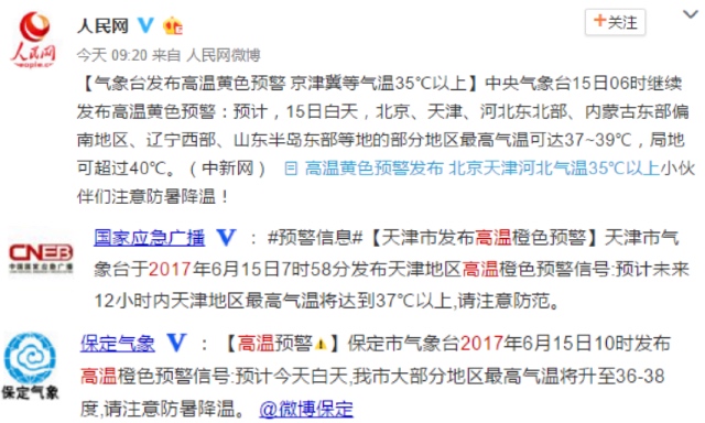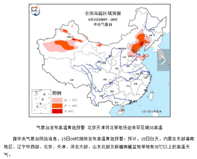 中国气象台发布最新高温预警黄色预警,京津冀等地气温直破35℃!不知北方的小伙伴们是否感受到了滚滚热浪!
