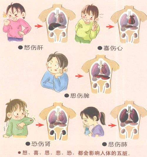 早在早在春秋战国时期,名医扁鹊就在《难经·四十九难》中说道: “有正经自病,有五邪所伤,何以别之·然:经言忧愁思虑则伤心。”此之谓情绪与心脏疾病的关系,中医历来也都有“怒伤肝、喜伤心、忧伤肺、思伤脾、恐伤肾”的理论,都是在说不良情绪对人们身体的影响。