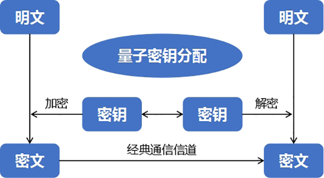 通过量子密钥分配可以对安全的通信密码加以建立,在一次一次的加密方式下,点对点方式的安全经典通信便得以实现。量子通信的安全性保障了密钥的安全性,从而保证加密后的信息是安全的。