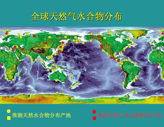 已有发现说明,海洋天然气水合物主要分布在北半球,且以太平洋边缘海域最多,其次是大西洋。陆坡、陆隆区是形成天然气水合物的最佳地区,这里沉积物较容易发育,有机质丰富,以甲烷为主的气体来源充足,有利于天然气水合物生成。