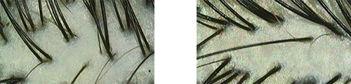 左图是用含硅洗发露的25岁女性,右图是无硅洗发露的27岁女性的头皮图片。两者没有任何差别,没有发现对头皮产生了什么损害,也并没有发现因为使用含硅洗发露造成了毛穴堵塞的情况。