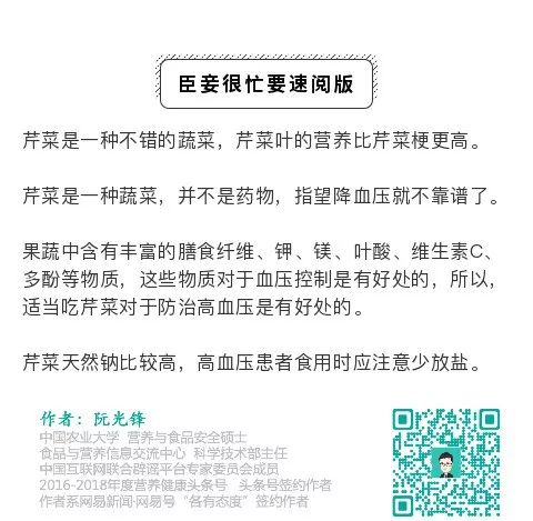 总的来说,芹菜是一种不错的蔬菜,适当吃对健康是有好处的。但是,它毕竟是一种食物,任何单一食物都不太可能独自起到降压的效果,否则直接当药就行了呀。