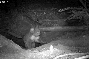 墨尔本大学一个研究团队就曾经在袋熊挖好的地道口放置过一个摄像机,拍摄到了造访袋熊家的各路邻居们,有考拉: