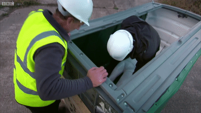 为了验证这一都市传说是否真实,Greg Foot和团队一起做了一次实验。首先,把假人放到模拟的电梯间中,并用吊车吊到30米高的地方。
