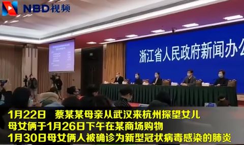 1月22日,蔡某某母亲从武汉来杭州探望女儿,其不仅没有居家隔离,还到商场购物,1月30日母女俩人被确诊为新型冠状病毒感染的肺炎。