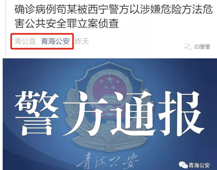 据青海公安,西宁一村民苟某长期在武汉务工,近日返宁后故意隐瞒真实行程和活动,编造虚假归宁日期信息,对自己已有发热咳嗽等症状刻意隐瞒,欺骗调查走访人员,且多次主动与周边人群密切接触。