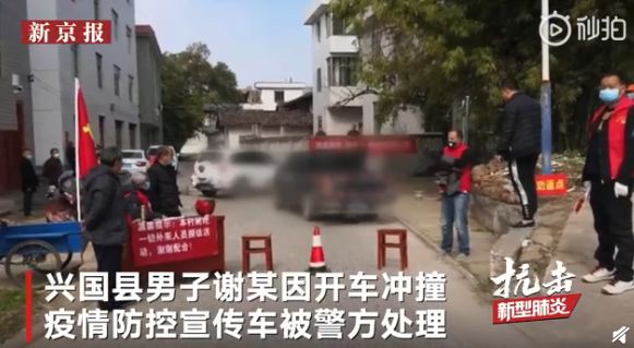 争吵后,谢某驾车冲向设卡拦截的疫情防控宣传车