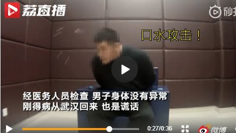 1月24日晚,无锡民警为一名酒后闹事的男子醒酒时,该男子不仅不配合,还称“我刚从武汉回来,还得了病”,竟对着民警哈气吐口水。