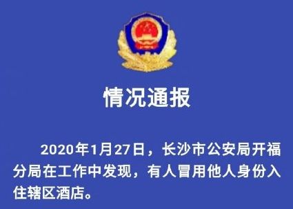 2020年1月27日,长沙市公安局开福分局在工作中发现,有人冒用他人身份入住辖区酒店。
