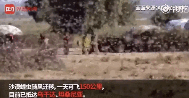 蝗群遮天蔽日,横扫了埃塞俄比亚、肯尼亚、索马里等国,估计总共有超过4000亿只蝗虫肆虐。