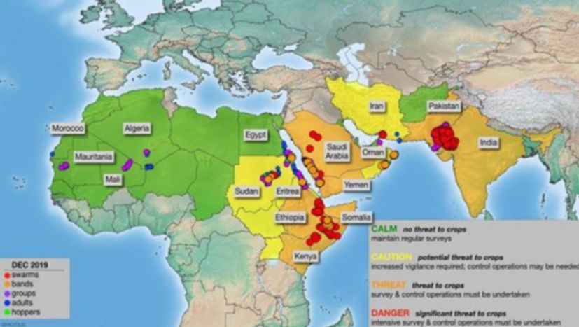 现在这群蝗虫已经“漂洋过海来看你”,入侵西亚、南亚诸国。
