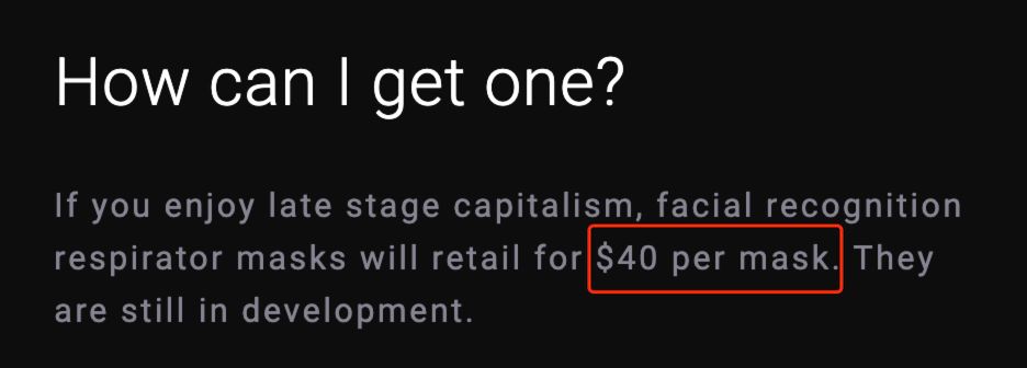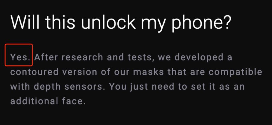 参考资料: https://faceidmasks.com/ https://wccftech.com/company-claims-it-will-create-face-id-compatible-masks-to-unlock-iphones/ https://twitter.com/djbaskin/status/1228798382598000640?ref_src=twsrc%5Etfw%7Ctwcamp%5Etweetembed%7Ctwterm%5E1229264328789909509&ref_url=https%3A%2F%2Fwccftech.com%2Fcompany-claims-it-will-create-face-id-compatible-masks-to-unlock-iphones%2F https://www.digitaltrends.com/news/facial-recognition-coronavirus-medical-masks-interview/