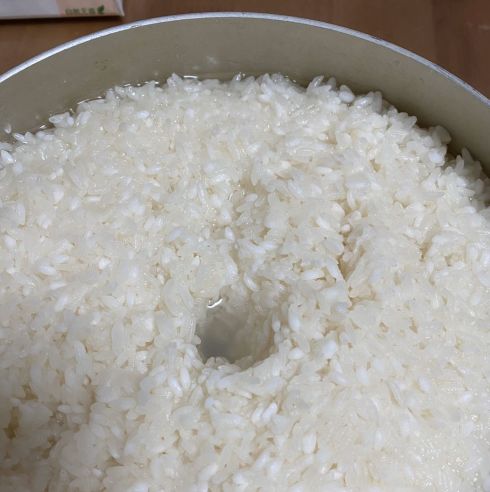 6、闻起来有米酒香,中间的洞里出水,转动容器,米浮在上面,说明米酒已经做好。