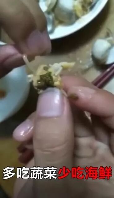 两天不断有人给我发一个小视频,说海鲜有很多寄生虫,建议多吃蔬菜少吃海鲜。