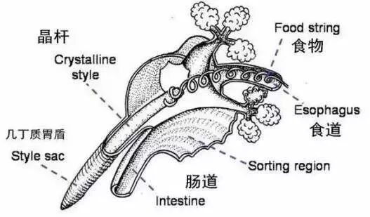 视频里面挑出来的半透明的“虫”是贝类的消化器官,学名“crystalline style”,在很多贝类都存在,比如扇贝、贻贝、牡蛎等。
