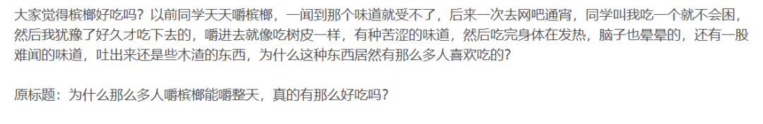 描述2号——槟榔味道像吃感冒药配咖啡。