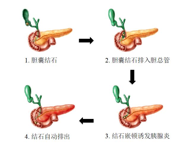 胆石症是胰腺炎的常见病因之一,胆结石在排出过程中嵌顿于十二指肠乳头处,造成胰管的堵塞,胰管内压力上升,进而导致胰腺炎。