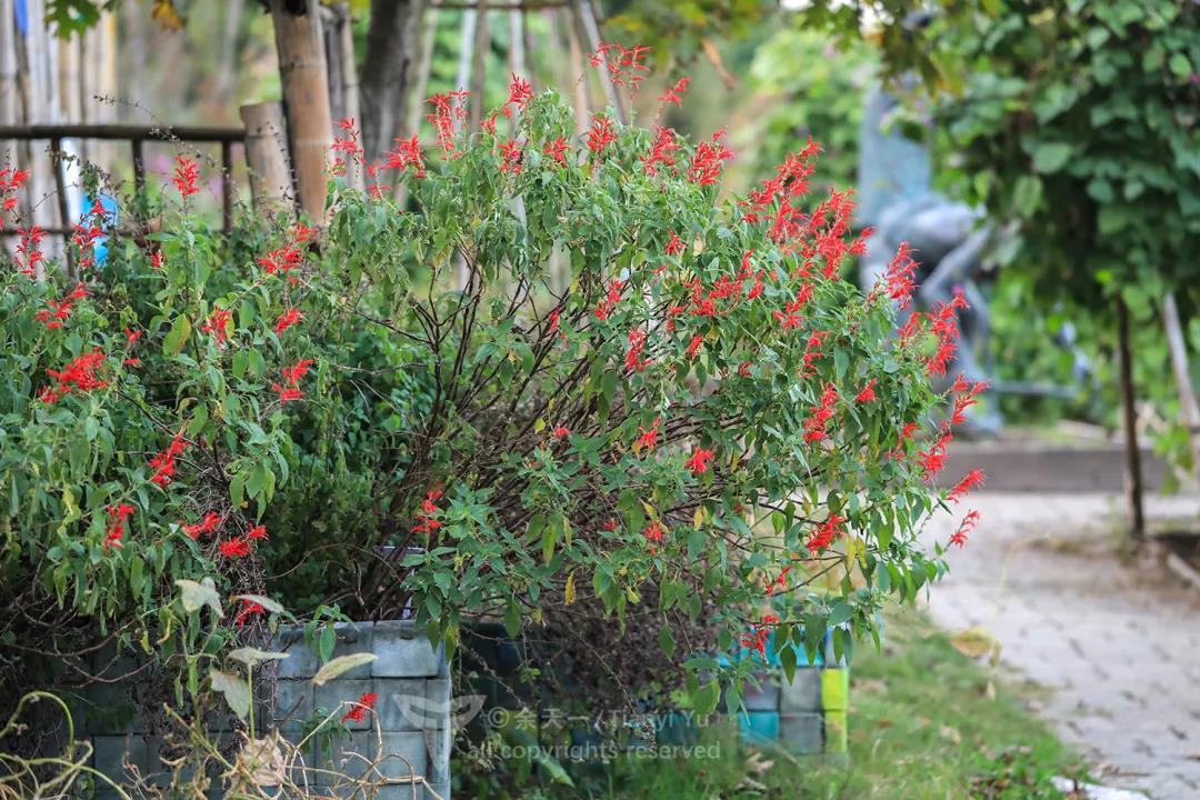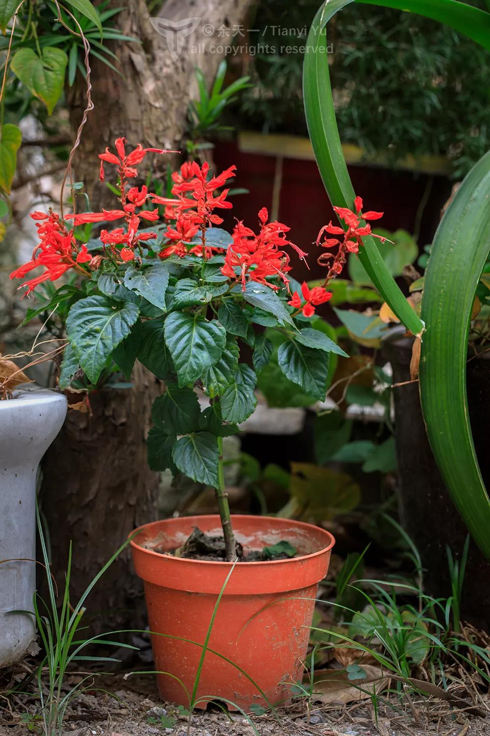 盆栽的一串红,长成了小灌木。图片:余天一