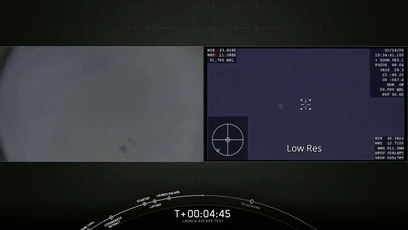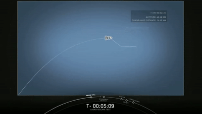 爆炸并未影响到飞船飞行,并且它在2分钟左右和推进器分离,然后高度开始下降: