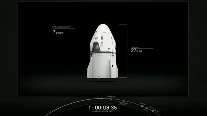 4分钟左右的时候,Crew Dragon展开了减速伞: