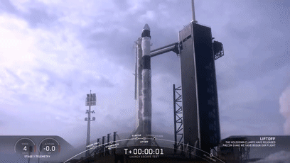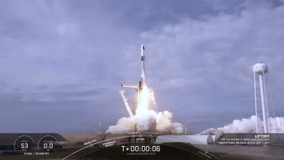 猎鹰9号火箭带着Crew Dragon发射升空: